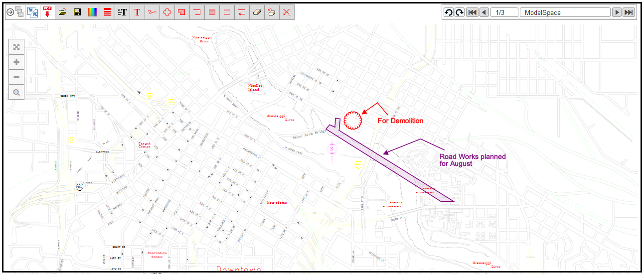 Go to Online DemoRedline control icon disk displayed at load. Links with AutoXchange for own server on-the-fly conversion control of CAD drawings.